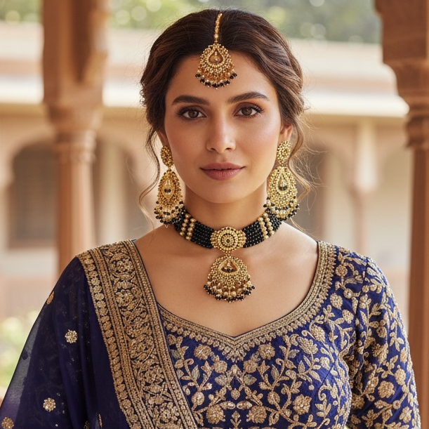 Discover the allure of this Menakari necklace set, where authentic craftsmanship meets radiant gold plating. Each piece captivates with intricate detail and lasting brilliance.