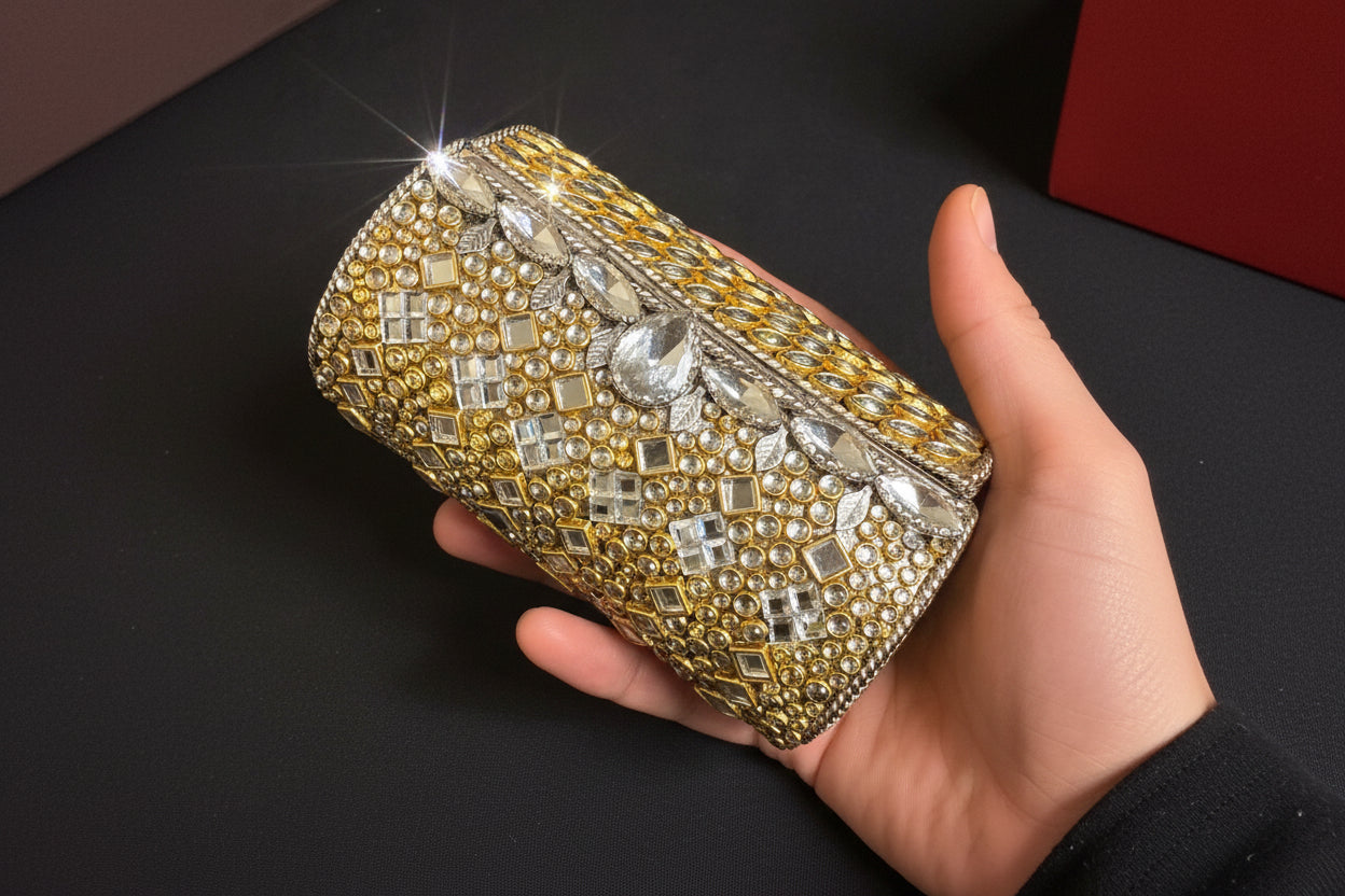 The Haleema Clutch is a stunning accessory inspired by Turkish style mini clutches. Its elegant design adds a touch of sophistication to any outfit. Made with high quality materials, it is durable and functional.