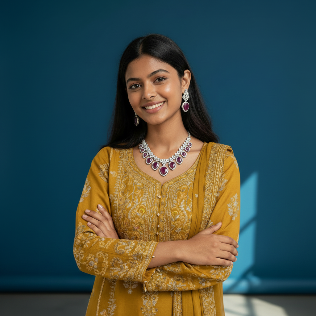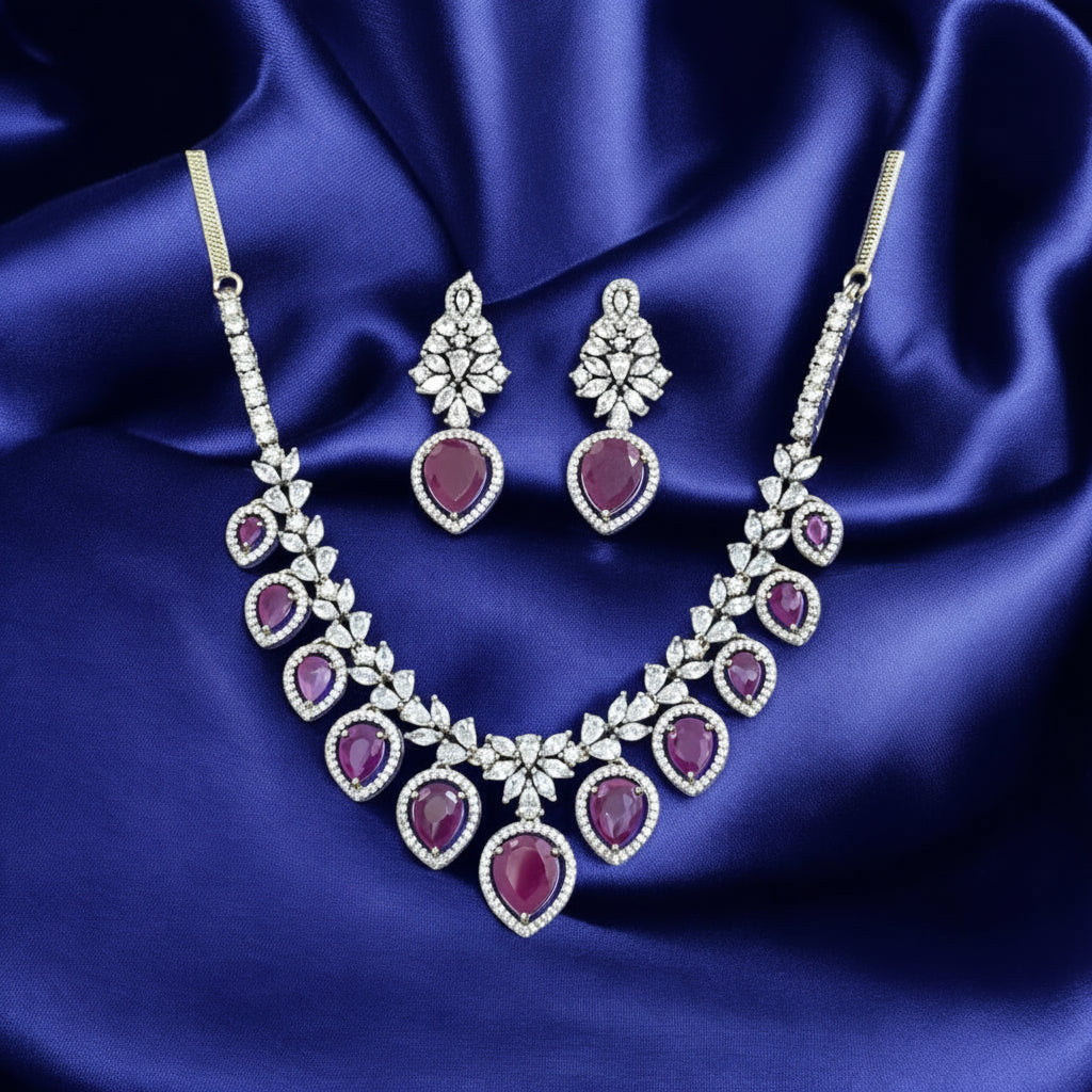 The Gulrukh Classic Set features brilliant cubic zirconia stones with a protective rhodium plating that resists tarnishing and keeps your jewelry looking radiant.