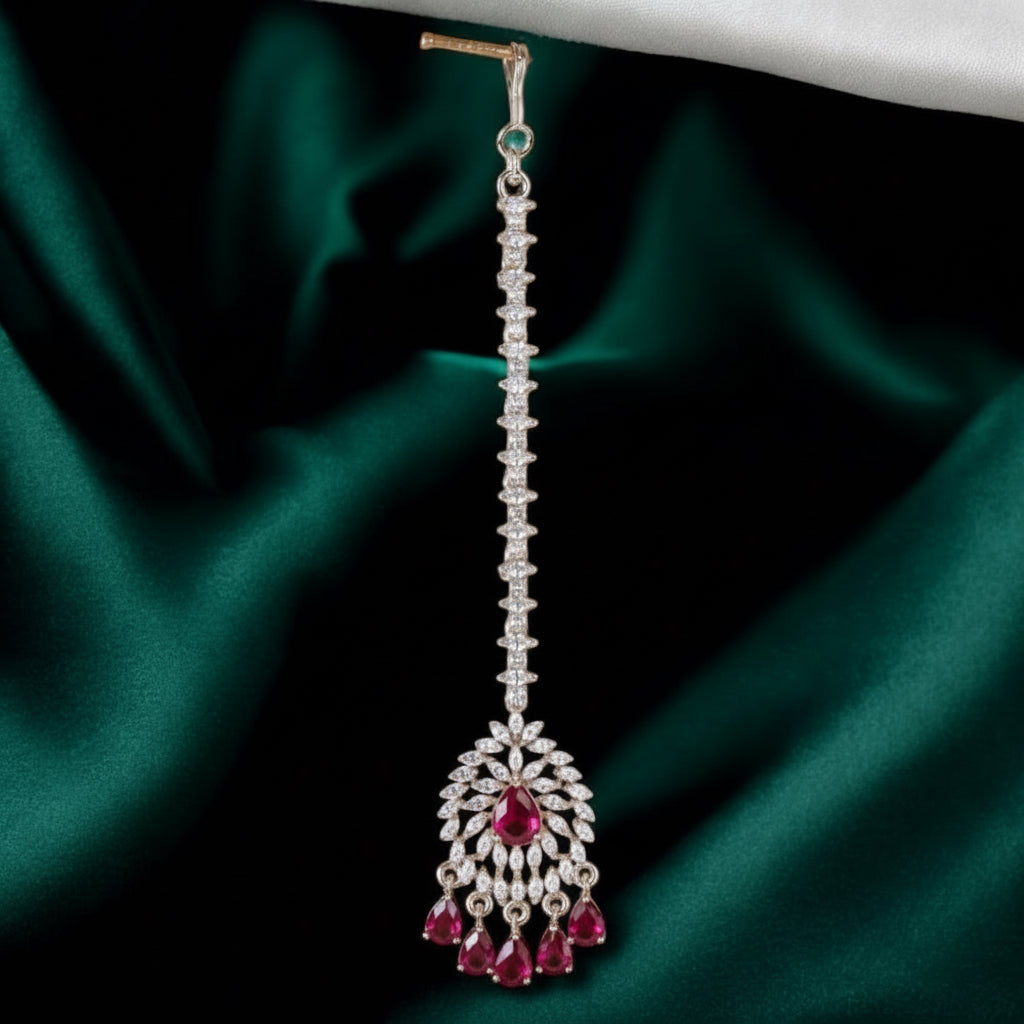Sareena tikka collection features a stunning collection of maang tikka. Crafted with cubic zirconia and rhodium plating, this collection offers lasting shine and resistance to tarnishing.